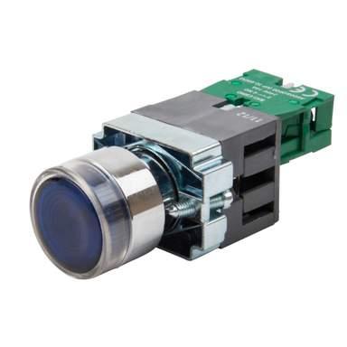 MCG Blue Illuminated Pushbutton 1 NO Contact 230V Lampholder without Lamp