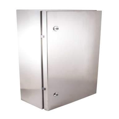 - Enclosure and door with formed corners manufactured from 1.5mm thick pre-satinised AISI 304L stainless sheet steel