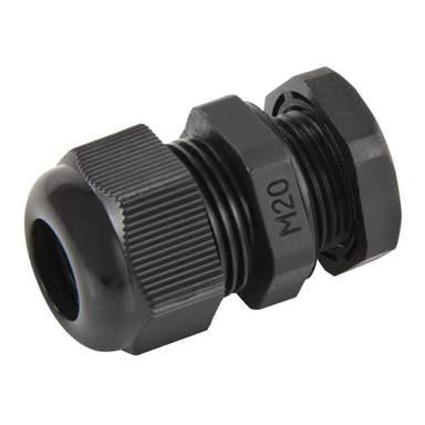MCG 20mm IP68 Long Thread Wide Compression Gland with Locknut Black (Pack of 10)